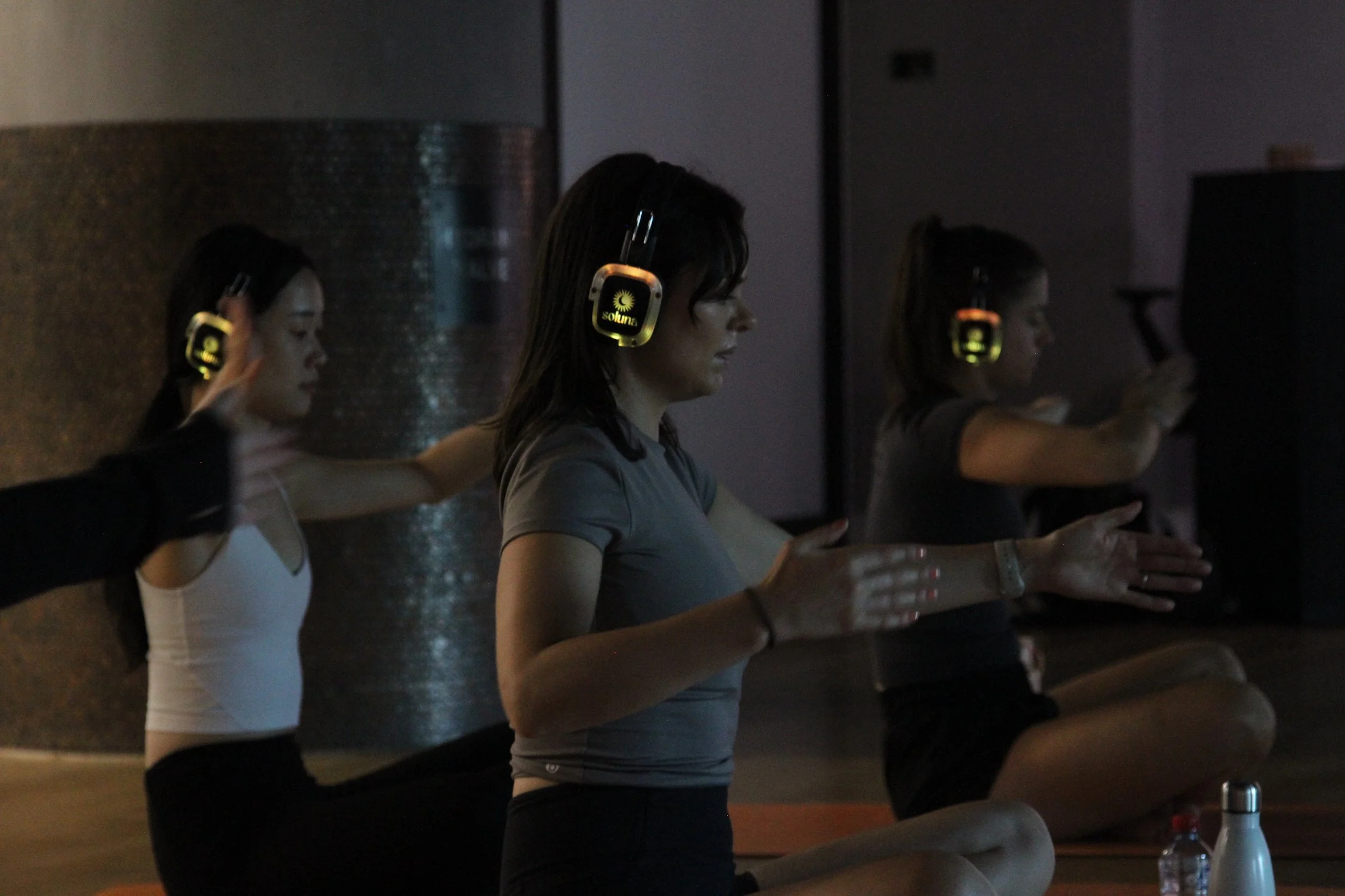 Using our signature headphones, guests are immersed in their own experience while still connected to the collective rhythm of the group - balancing personal space with shared energy. Ultimately, our class is designed to: